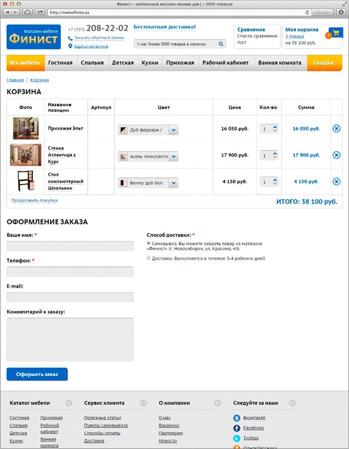 Mebelfinist.ru - это интернет-магазин известного мебельного бренда, с широким ассортиментом мягкой и корпусной мебели. На сайте компании размещено более 5000 товаров, есть возможность доставки и самовывоза товара. Cайт mebelfinist.ru связан с системой 1С, информация о товарах на сайте обновляются ежедневно, а данные о заказах на сайте импортируются в 1С автоматически. В карточке товара реализована интересная функция - добавления модулей к товару, к примеру, к спальне можно добавить тумбочку, зеркало или комод. Помимо создания сайта, проводится регулярная работа по развитию и улучшению юзабилити сайта. Например, в процессе доработки сайта была добавлена возможность сравнения товаров и раздел “Скидки”, увеличен размер шрифта и ширина сайта.Сайт построен на платформе 1C.Битрикс, при разработке мы использовали технологию “Композитный сайт” - сайт загружается и работает очень быстро, что вносит значительный вклад в оптимизацию и продвижение сайта поисковых системах.